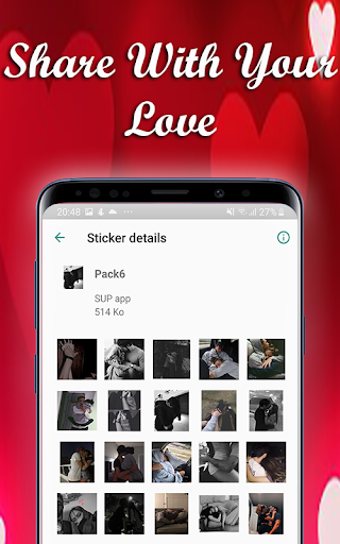 В этом приложении вы найдете много разных любовных наклеек, а также множество отличных любовных фраз. С их помощью вы можете поделиться со своими близкими сообщением, которое у вас есть для них.
