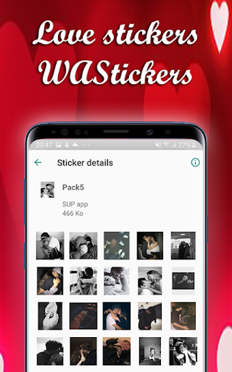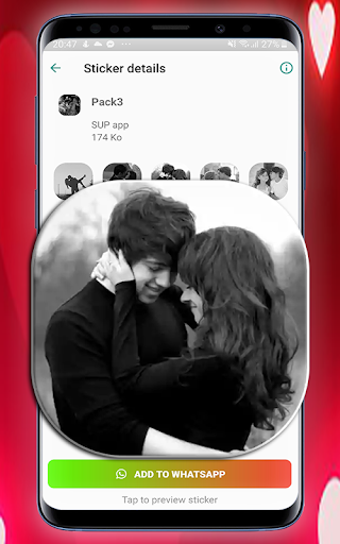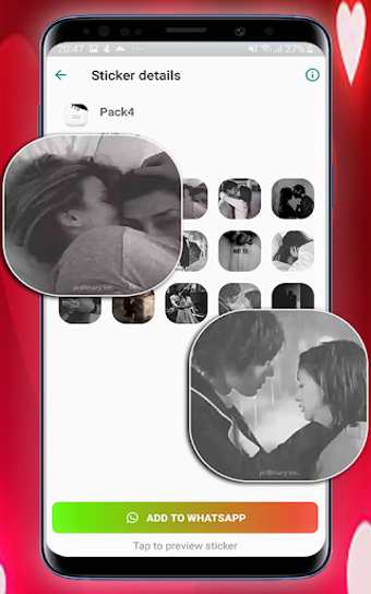 С помощью этого приложения вы сможете делиться романтическими стикерами для WhatsApp, которые вы можете использовать, чтобы поделиться с ними своими чувствами. Вы сможете выбрать из множества наклеек, которые вы можете использовать, например ту, которая вам нравится больше всего, или вы можете выбрать из набора наклеек, который вы уже установили.